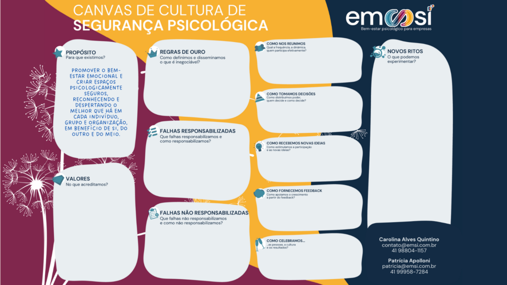 O Canvas de Cultura de Segurança Psicológica não é um modelo pronto. Ele é uma dinâmica construída junto com cada empresa, respeitando sua realidade, seus desafios e seus objetivos.